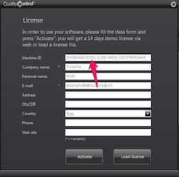 Quality Control When you downloaded and installed the program, you had a box appear like this. The arrow indicates your machine ID which needs to be entered in the box above.